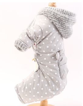 Милый и легкий комбинезон для ваших любимцев и любимиц "Горошки". Выполнен из непромокаемой болони, утеплен синтепоном - подкладка - трикотаж. Стильный вязаный капюшон пристегивается кнопкой к спинке, украшен кармашком. Застегивается на животике на клепочки. |