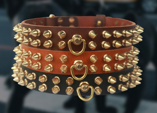 Стильный ошейник с шипами. Разные цвета и размеры. |