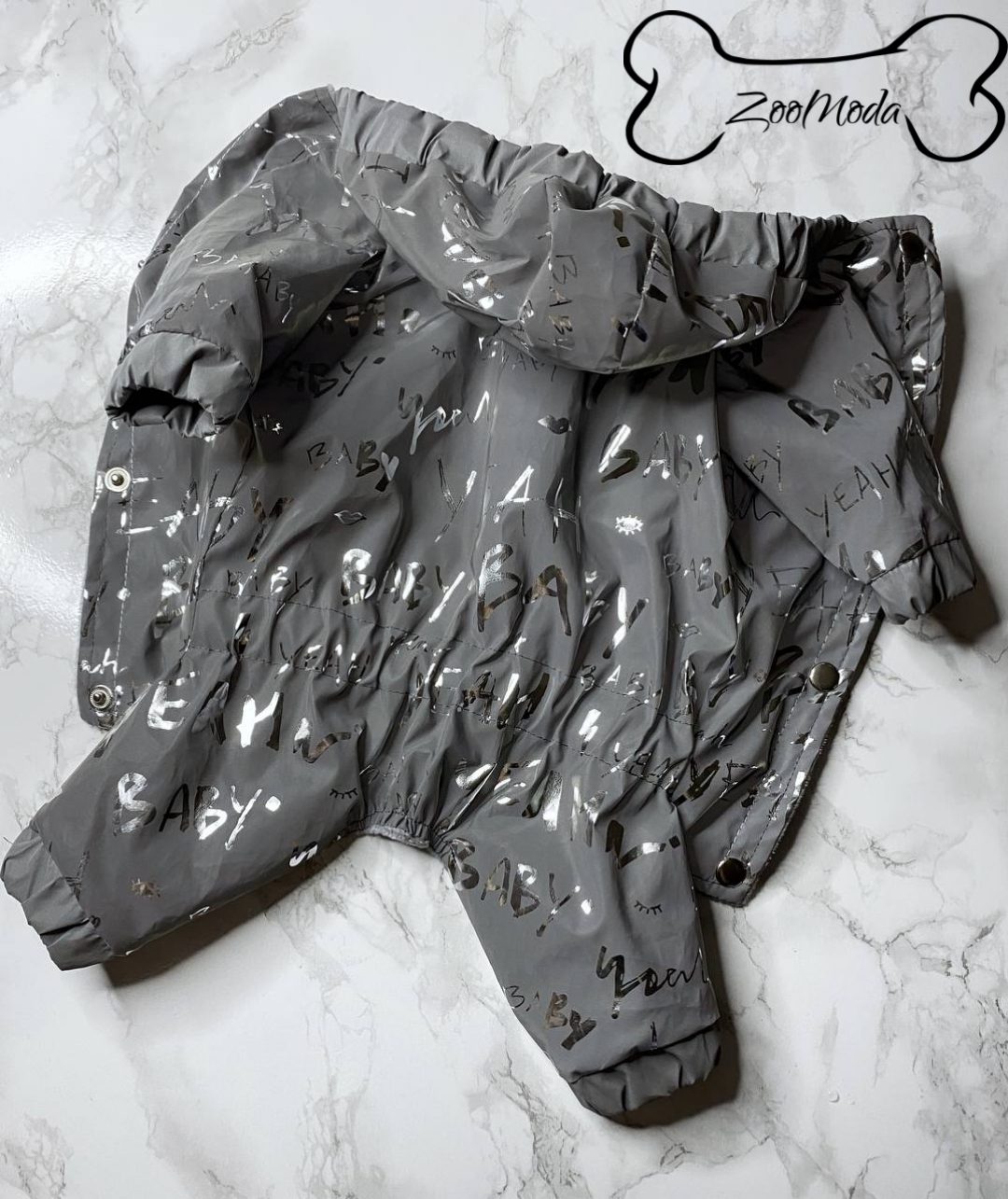 Шикарный комбинезон для ваших любимиц "Baby". Выполнен из светоотражающей болони. Подкладка - мягкий мех вельбоа. Застежка - кнопки на животе. Животик для девочек полностью закрыт. Капюшон фиксируется кнопкой к спинке. |