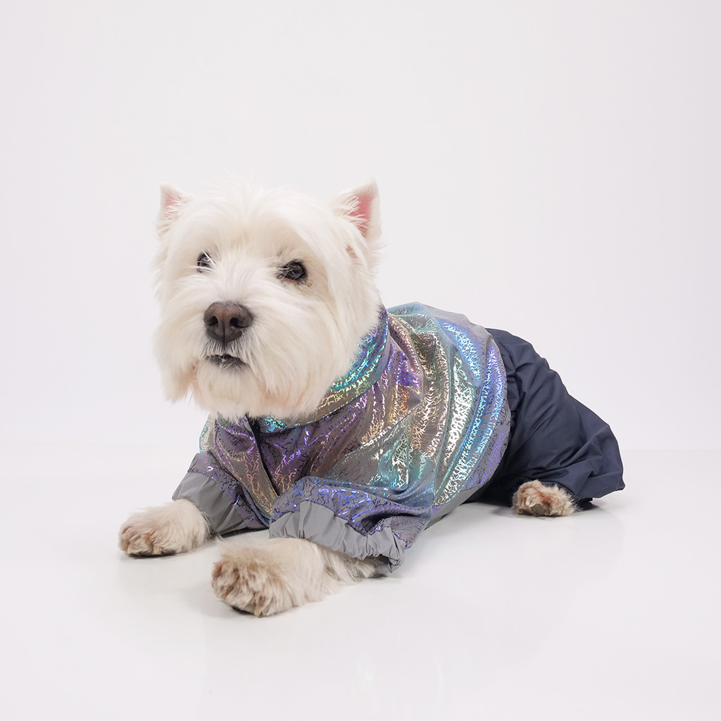 Стильный, тонкий дождевик для ваших любимиц. Выполнен из непромокаемой болони - верх светоотражающая ткань, штанишки из синего дюспо. При попадании искусственного света - курточка на дождевике становится яркой. Тонкая подкладочка из таффеты не спутает шерсть. Застегивается на животике на клепочки. Животик для девочки полностью закрыт. |