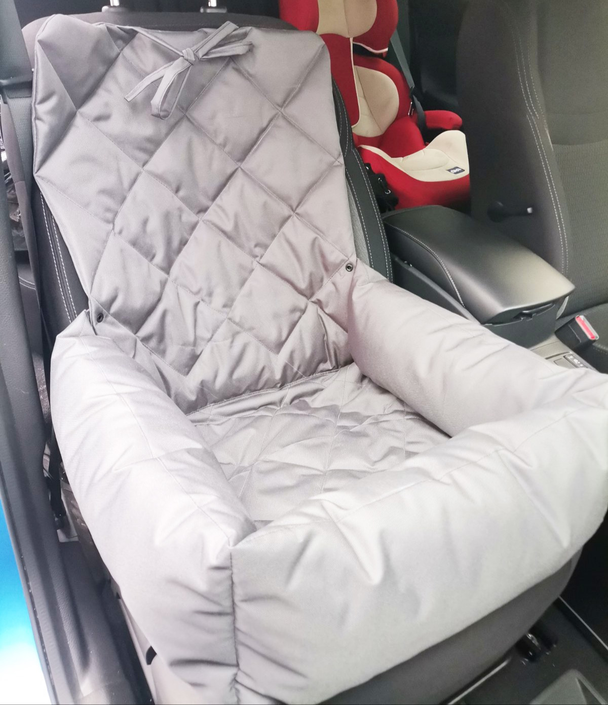 Удобная вещь в машину для комфорта вас и вашего питомца. Выполнено из практичного материала к которому не прилипает шерсть. Привязывается завязками сверху сиденья и вокруг. Высоту бортика можно подрегулировать кнопками в двух положениях. Ваш питомец будет в безопастности, а сиденье в чистоте. |