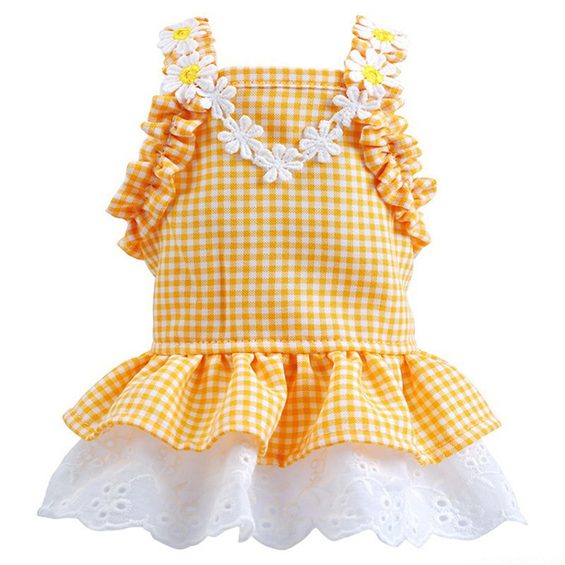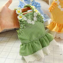 Яркий летний сарафан для ваших любимиц. Выполнен в трех цветах. На юбочке кружево. Застегивается на животике на клепочки. |