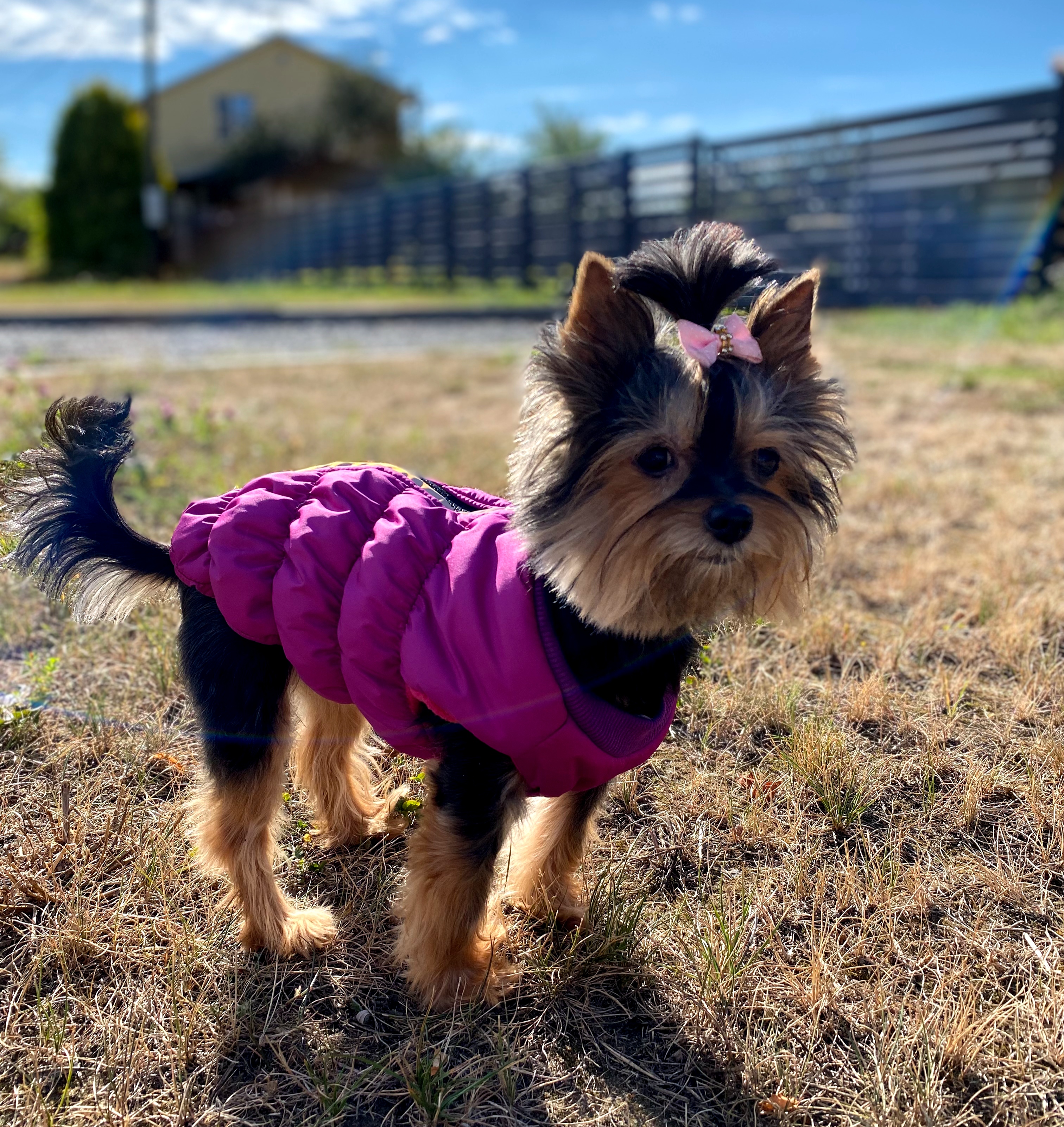 Яркий и удобный жилет для ваших любимиц "Girl boss". Выполнен из непромокаемой верхней ткани - дюспо, утеплен синтепоном и теплой флисовой подкладочкой. Застегивается на замок на спинке. Прошит резиночками, с помощью которых жилет прекрасно садится и на худеньких собак и на полных. На молнии есть светоотражающие элементы.