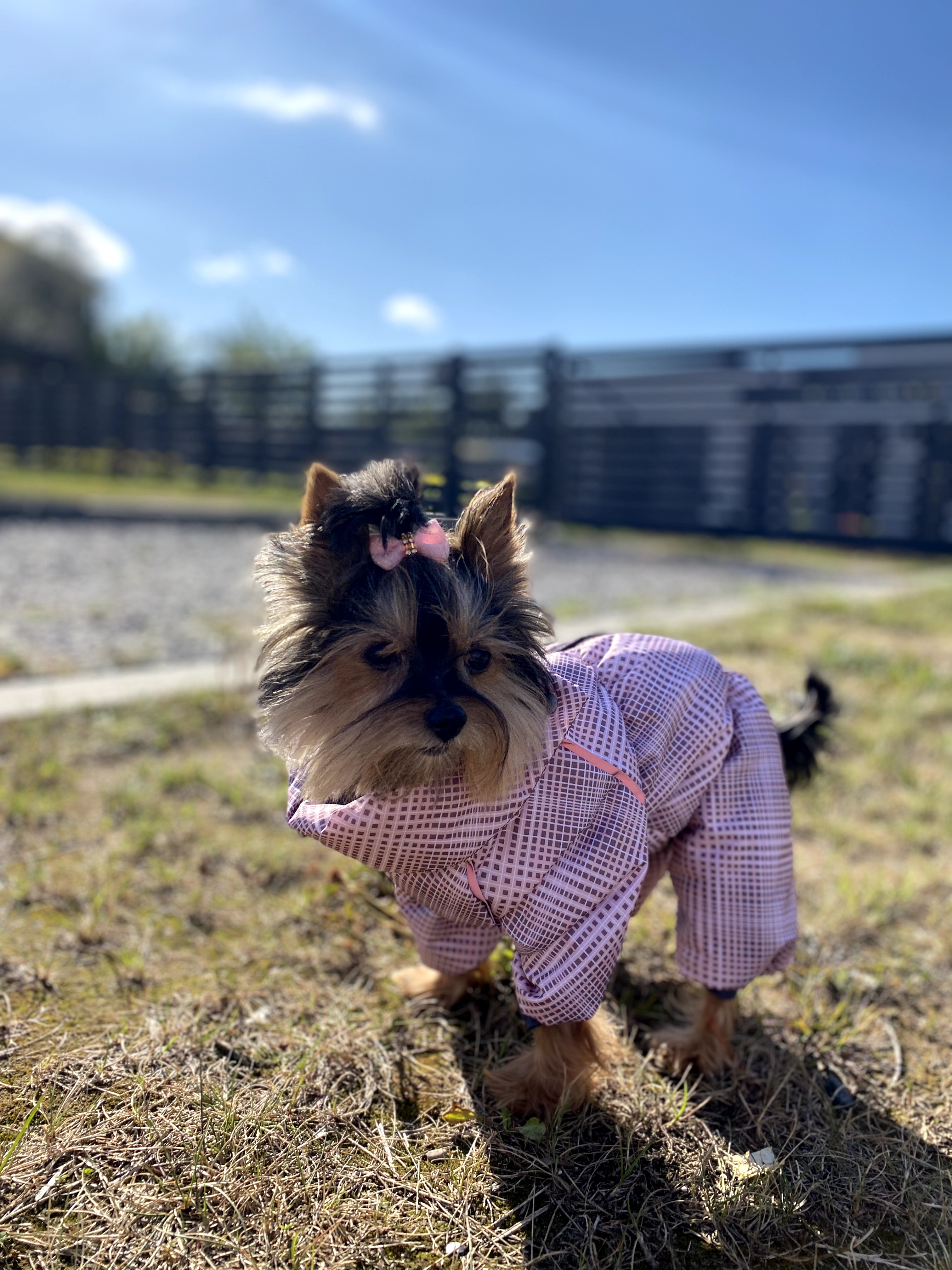Стильный лёгкий комбинезон для ваших любимиц "Клеточки". Выполнен из непромокаемой болони, утеплен тонким слоем синтепона, гладкая подкладочка не спутает шерсть. Светоотражающие элементы. Застегивается на спинке на молнию. Высокий регулируемый воротник. Животик для девочки полностью закрыт.