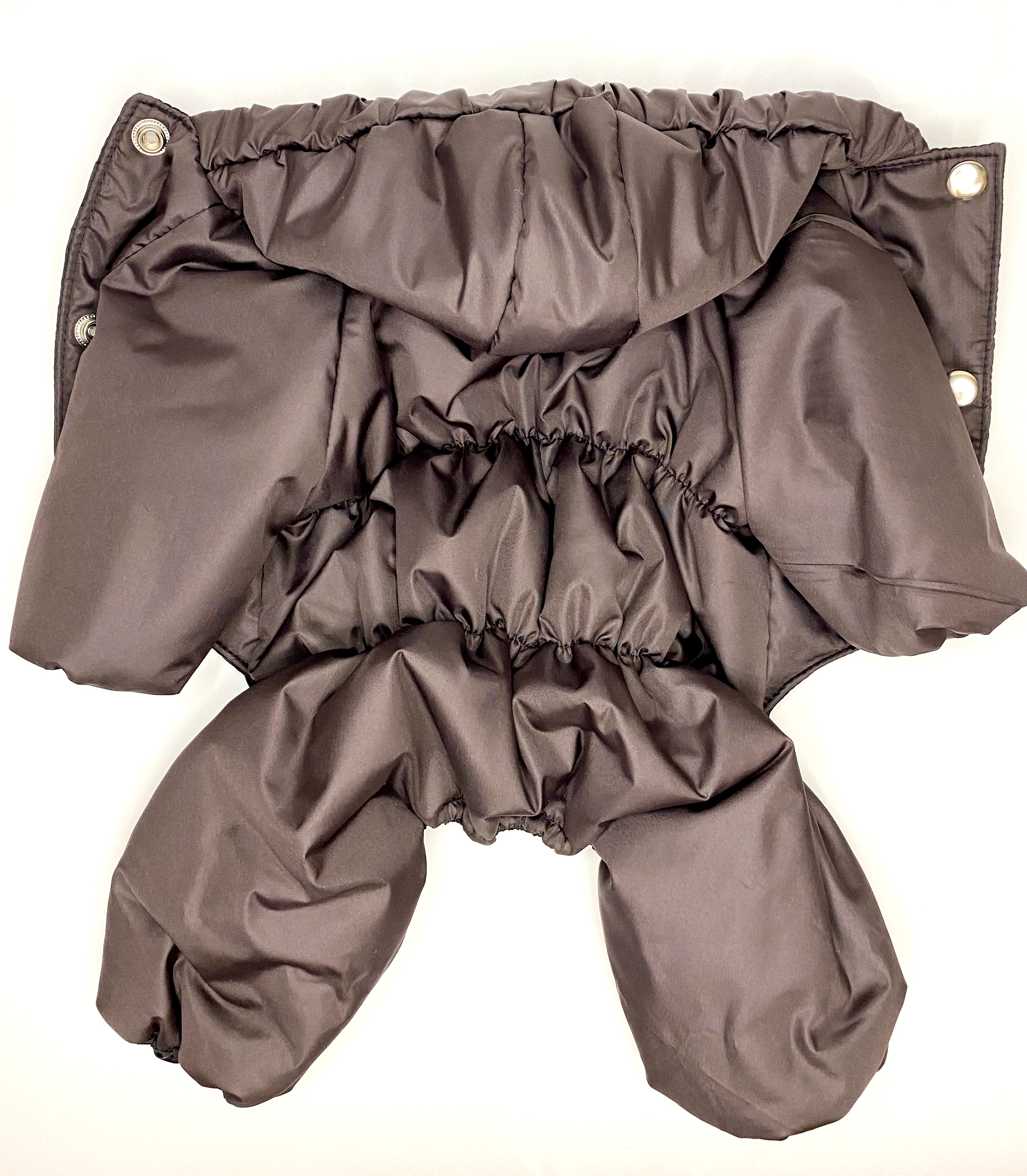 Простой и бюджетный комбинезон для ваших любимцев и любимиц "Шоко". Выполнен из непромокаемого дюспо, утеплен синтепоном, гладкая подкладочка. Застегивается на животике на клепочки. Унисекс. |