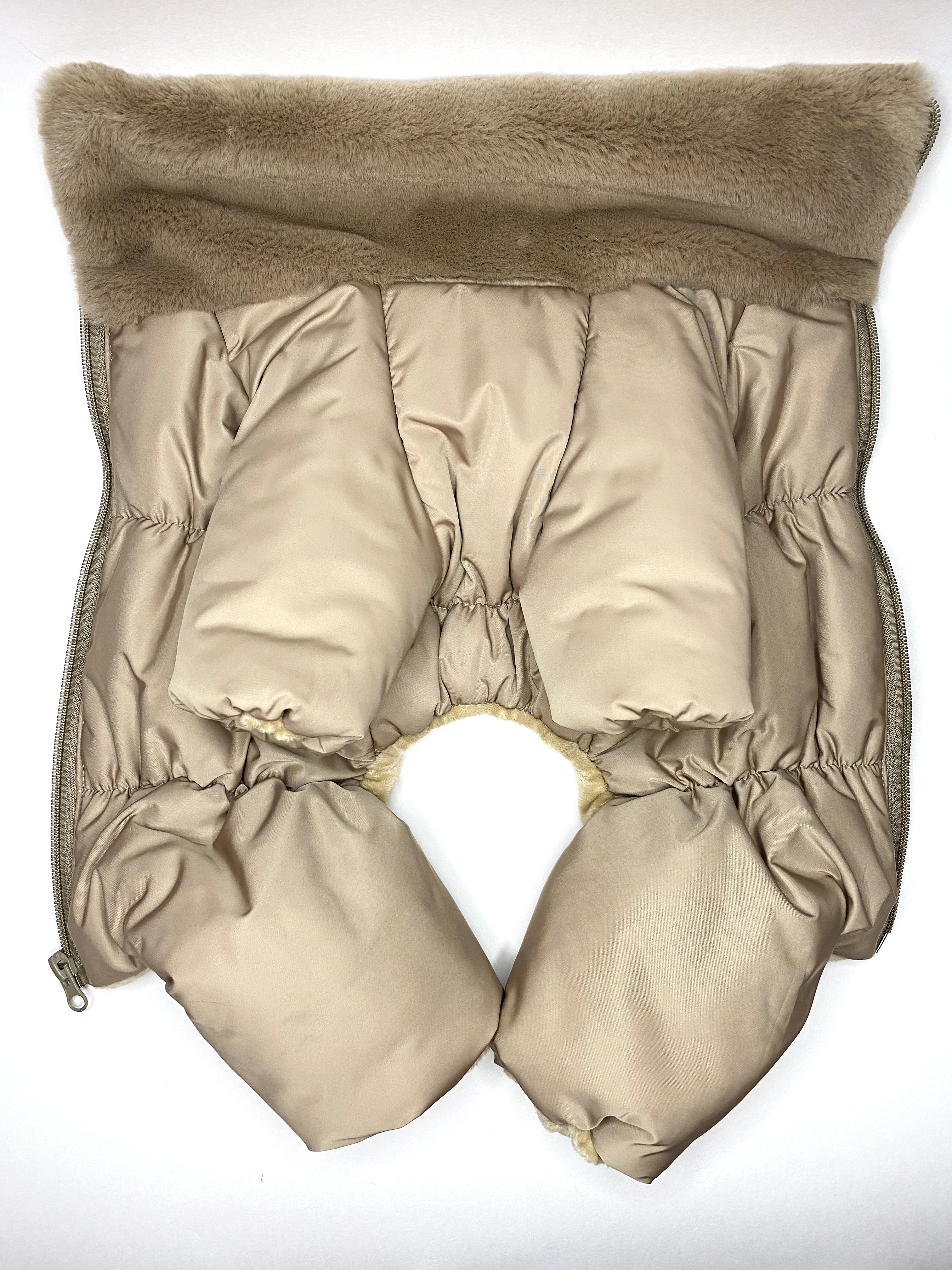 Теплый комбинезон для ваших любимцев и любимиц "Классика". Выполнен из непрокаемой и непродуваемой ткани, утеплен синтепоном и теплой подкладочкой из меха вельбоа. Застегивается на спинке на молнию. Воротник стоечка с меховой опушкой - закрывает и согревает шею. Прошит резиночками для лучшего прилегания к телу и подходит худеньким собачкам. |