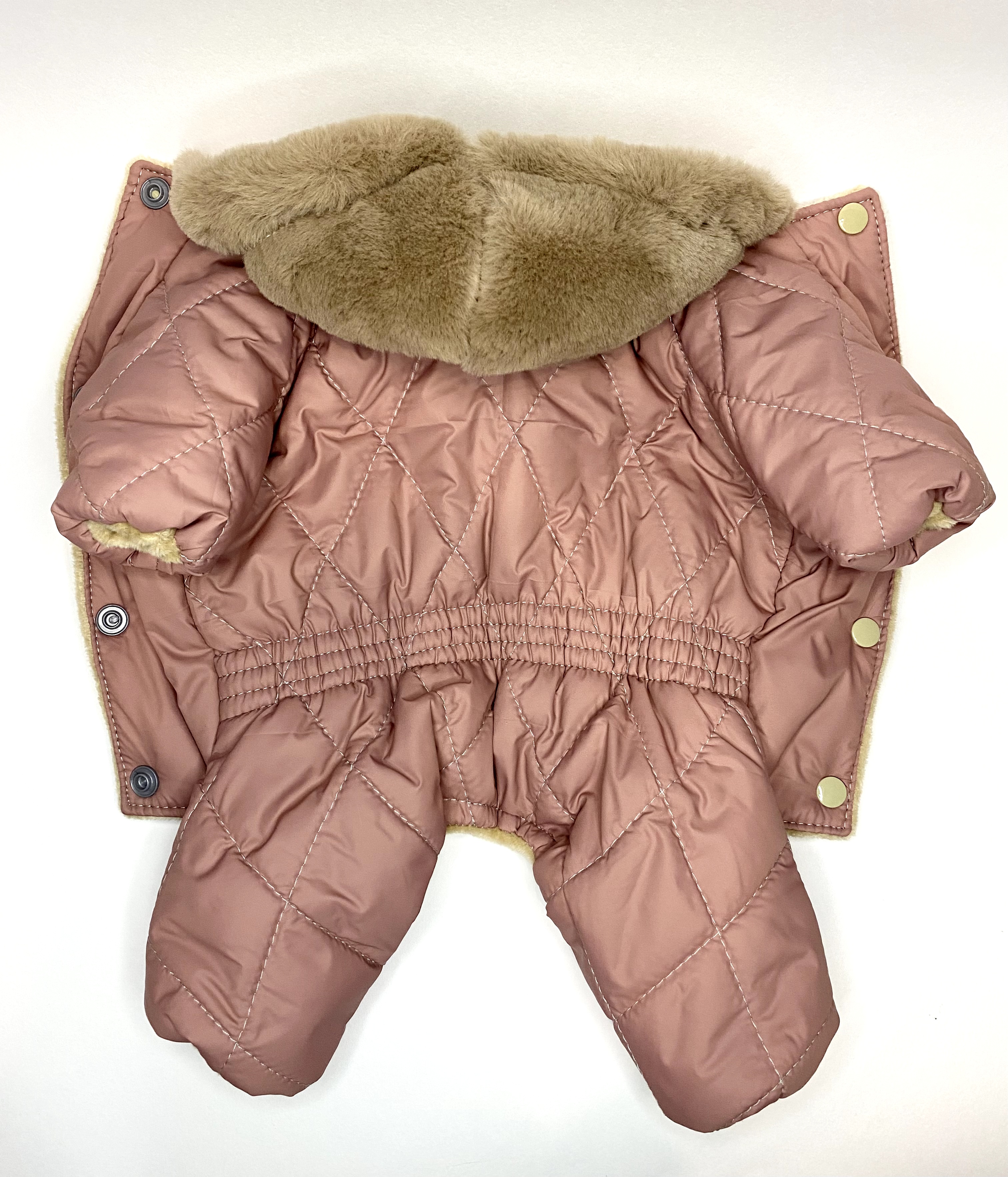 Теплый и красивый комбинезон "Стежка". Выполнен из непромокаемой и непродуваемой верхней ткани, утеплен синтепоном и нежным мягким мехом вельбоа на подкладке. Теплый, мягкий капюшон можно пристегнуть кнопкой к спинке для удобства. Животик для девочек полностью закрыт. Застегивается на животике на клепки. |