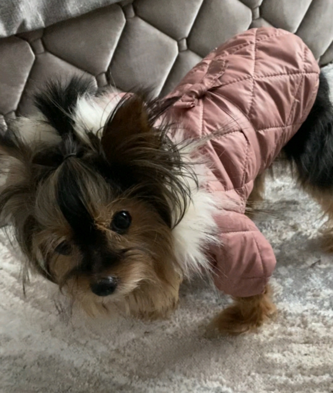 Стильная и практичная куртка для ваших любимиц "Пудра". Выполнена из непромокаемоего глянцевого дюспо, утеплена синтепоном. Гладкая подкладочка не путает шерсть. Застегивается на животике на клепочки. На капюшоне красивая меховая опушка из искусственного меха. Капюшон можно отстегнуть. |