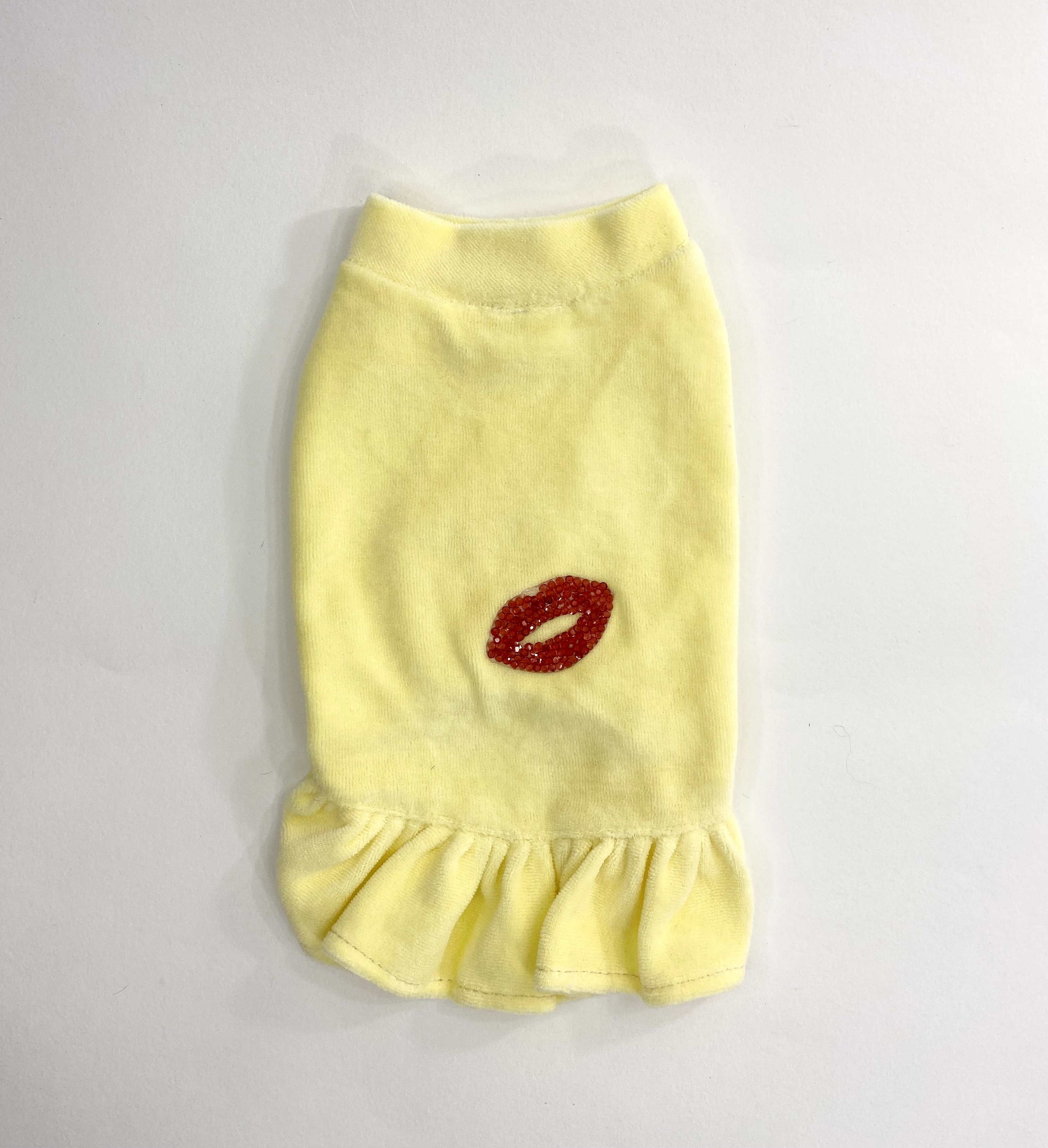 Милое и удобное платье для ваших любимиц "Kiss". Выполнено из хлопкового велюра, на спинке аппликация из страз. Одевается через голову. |