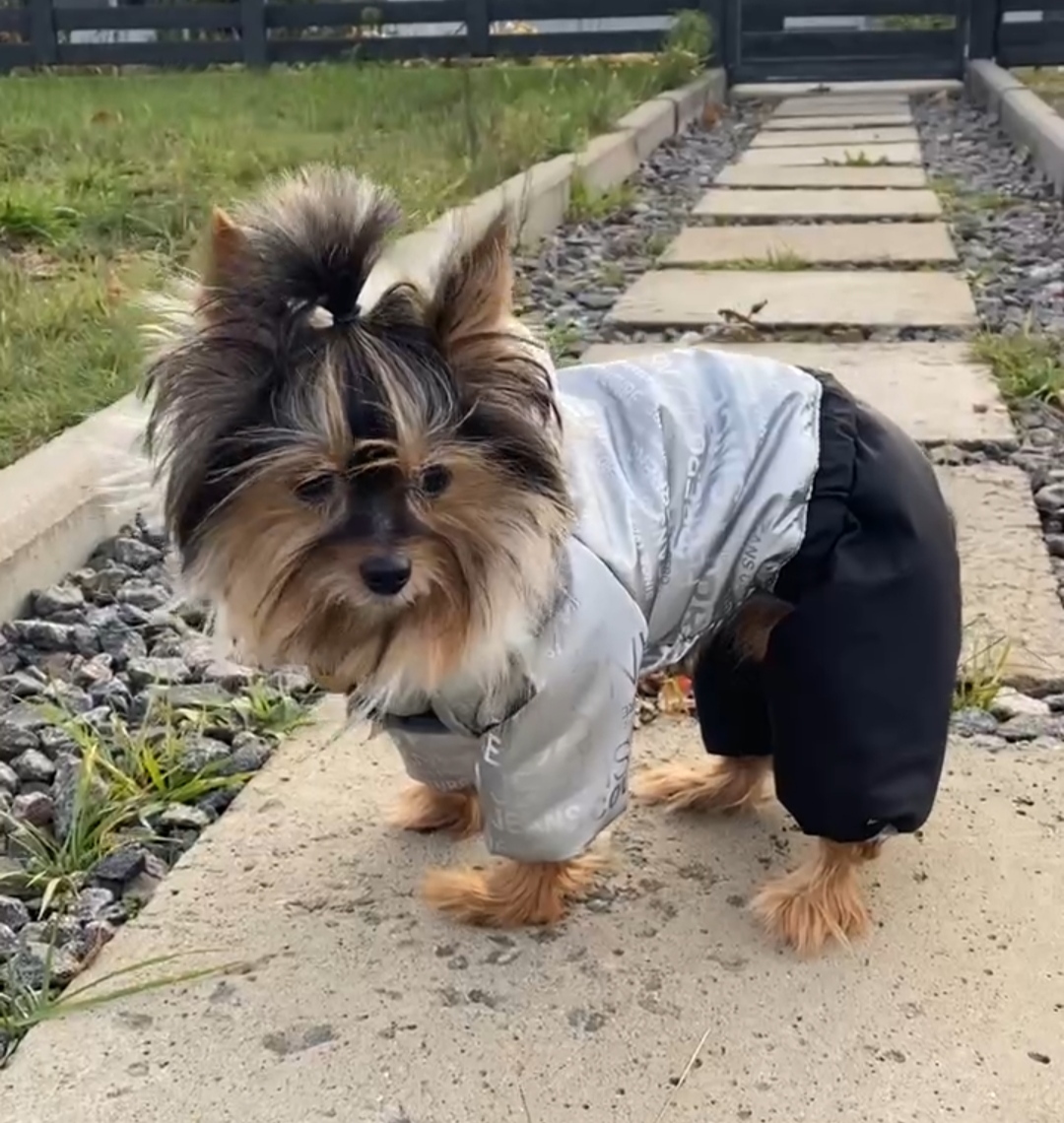 Утепление синтепоном и теплая подкладка из меха вельбоа обеспечивают надежную защиту от холода в зимние дни. Комбинезон предлагает комфорт и тепло в самых холодных условиях, защищая вашего питомца от ветра и снега.