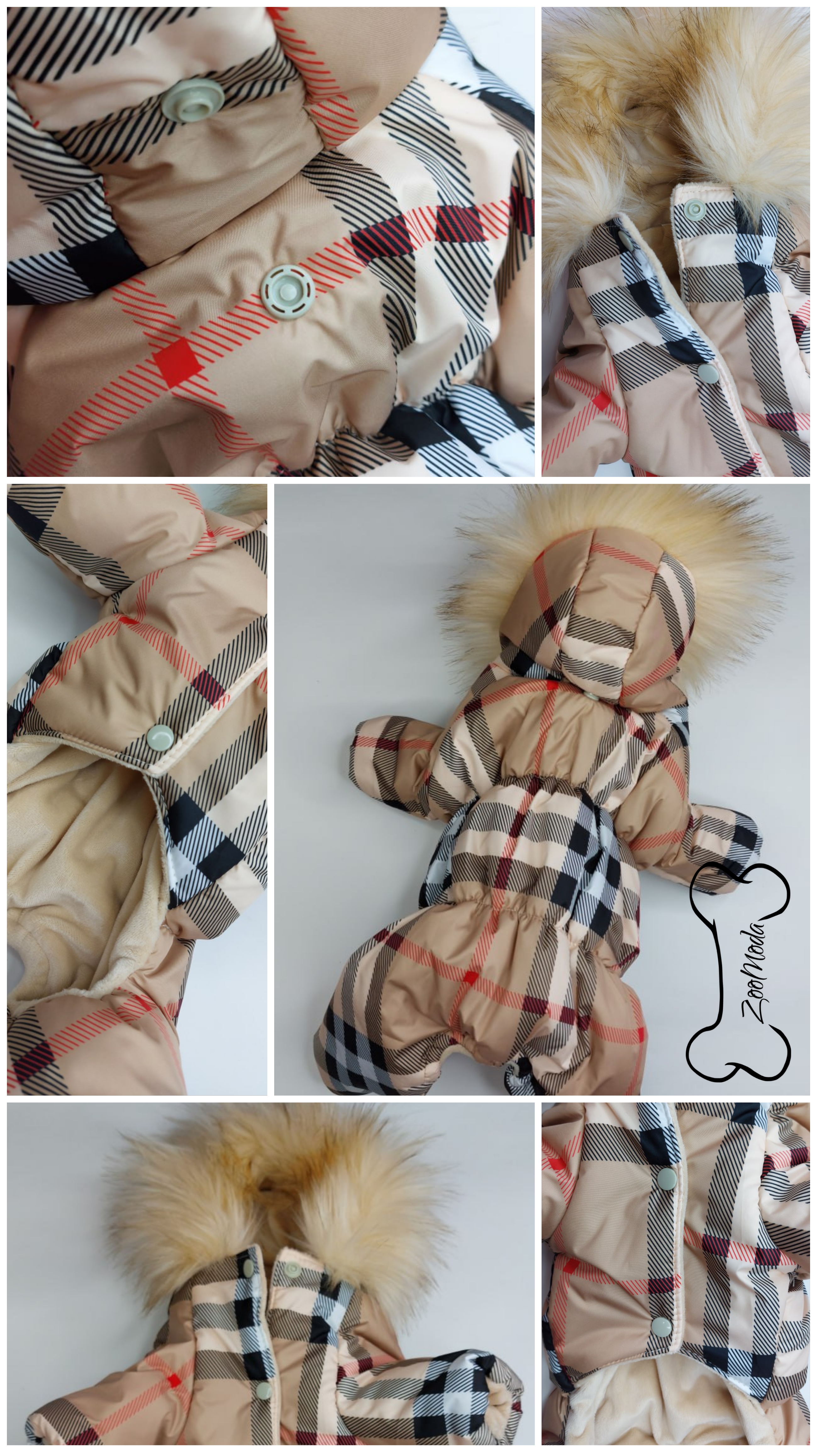 Этот стильный зимний комбинезон для собак выполнен в классическом стиле Burberry с клетчатым рисунком. Модель унисекс, подходящая как для кобелей, так и для сук. Комбинезон утеплен синтепоном и дополнен мягкой меховой подкладкой, что обеспечивает максимальную защиту от холода даже в суровые зимние дни. Капюшон украшен густой меховой опушкой, придающей комбинезону стильный вид и дополнительную защиту от ветра.