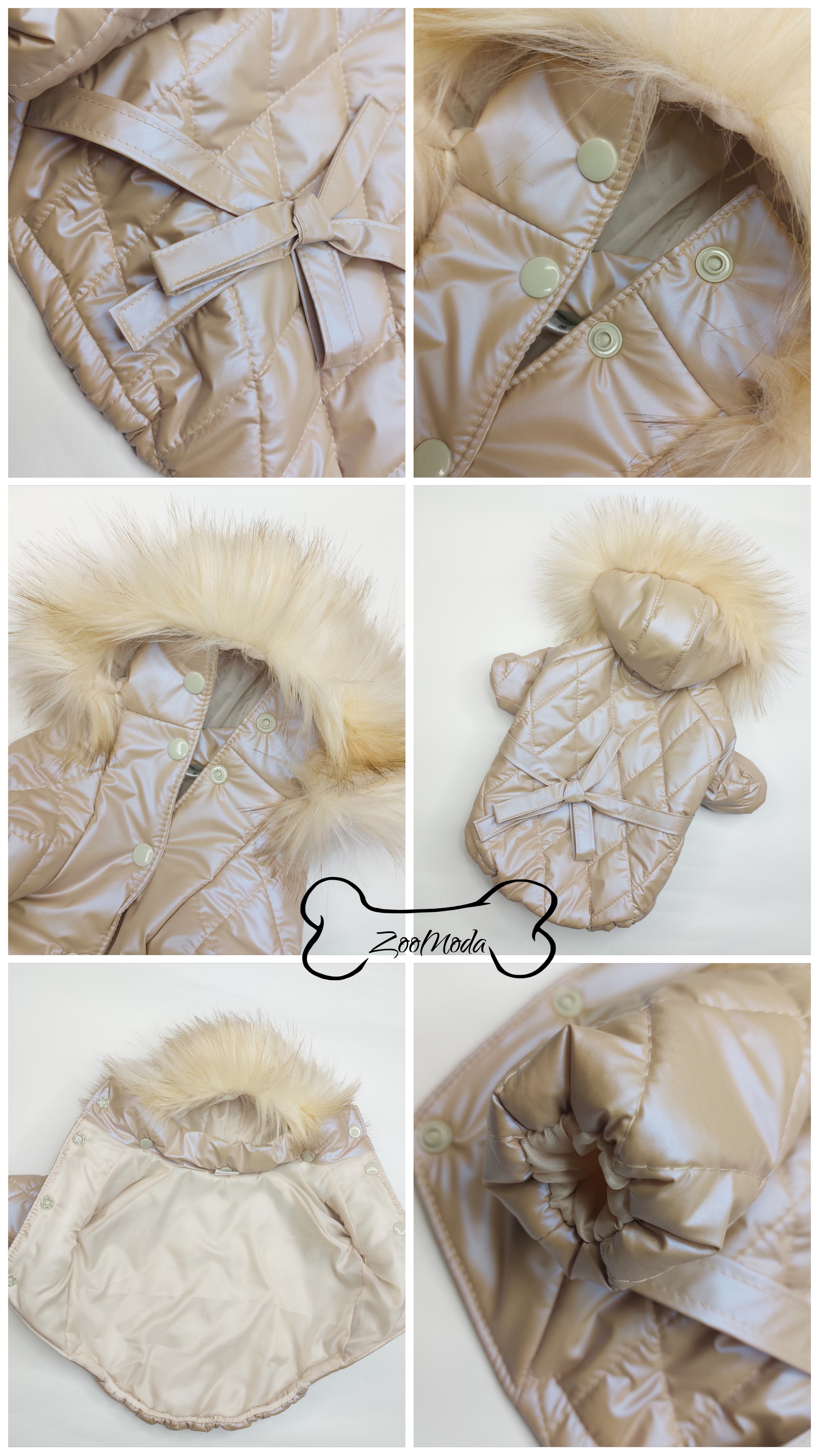 ✔ Капюшон с меховой отделкой: Роскошный искусственный мех защищает шею и голову питомца от холода.