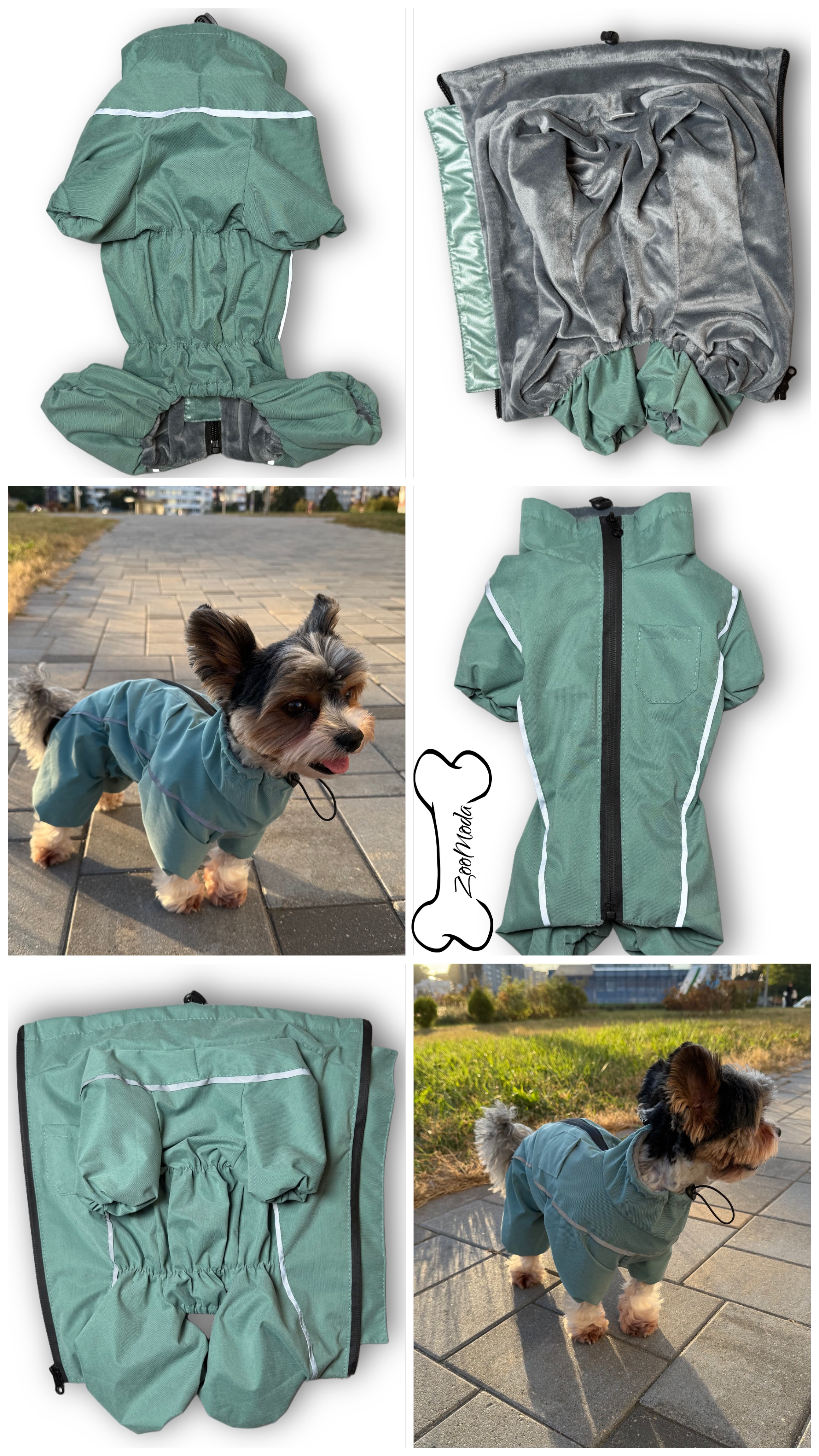 Комбинезон оснащён светоотражающими полосками по всему телу, что обеспечивает безопасность питомца даже в вечернее время и при слабом освещении. Закрытый животик защищает собаку от грязи и холода, что особенно важно для прогулок в непогоду.