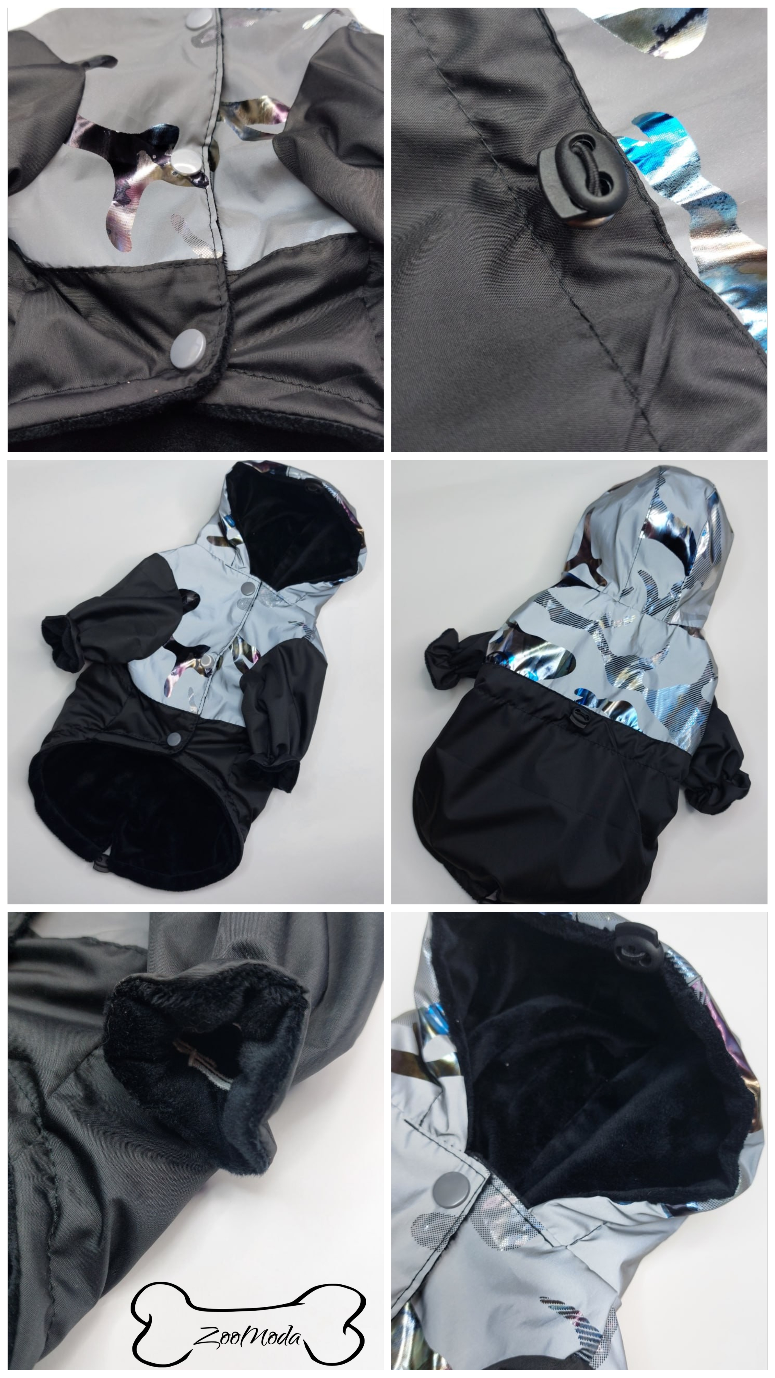 Стильная и функциональная куртка для собак, выполненная из светоотражающей ткани на спинке и капюшоне. Благодаря этому питомец будет хорошо заметен в темное время суток, что обеспечивает дополнительную безопасность на прогулках.
